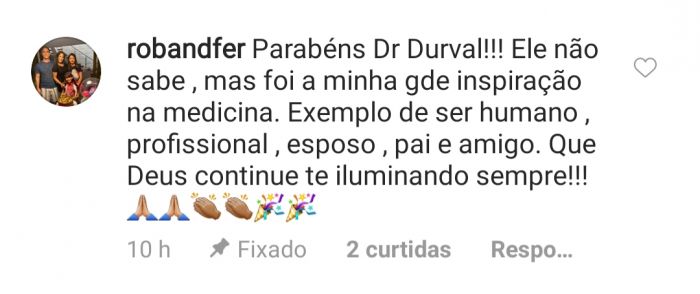 O post rendeu vários comentários, entre eles, o de um médico que diz ter se inspirado no veterano. "Ele não sabe, mas foi a minha grande inspiração na medicina", revelou Roberto Ferreira.