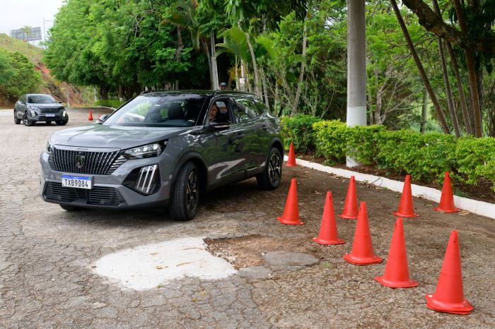 Os modelos híbridos da Peugeot utilizados na competição se destacaram pela eficiência e tecnologia. O Peugeot 2008 GT T200 HYBRID AT, que utilizei, possui motor 1.0 turbo de 130 cv, câmbio CVT com sete marchas simuladas, modos de condução Normal e Sport, painel digital 3D, carregamento sem fio, seis airbags e assistentes de condução como alerta de colisão e permanência em faixa.