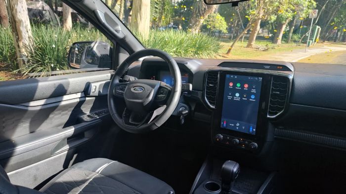 A Ranger Black também enfrentou pequenas trilhas de terra, locais onde a tração 4x2 mostrou suas limitações em relação às versões 4x4 da linha, mas ainda assim manteve bom desempenho. O modo de condução "Escorregadio", um dos quatro disponíveis (junto de Normal, Eco e Rebocar/Transporte), ajudou a ajustar a resposta do acelerador e o controle de tração, proporcionando mais confiança em pisos de baixa aderência. Embora não seja voltada especificamente para o off-road, a versão mantém a robustez tradicional da família, com 800 mm de capacidade de imersão e ângulos de ataque e saída que permitem transpor obstáculos moderados com segurança.