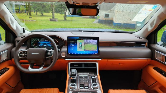 No interior, a Tunland V9 prioriza conforto e conectividade. A central multimídia de 14,6 polegadas, a maior da categoria, e o painel de instrumentos digital de 12,3 polegadas organizam todas as funções de forma intuitiva. Os bancos contam com ajustes elétricos e revestimento premium, acompanhados de carregador por indução, conexão Apple CarPlay/Carbit e teto solar panorâmico. Há também iluminação ambiente com 256 combinações de cores, reforçando a proposta tecnológica.