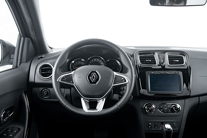 O Renault Logan é equipado com Media Evolution, central multimídia com tecnologia Android Auto e Apple Carplay, permitindo usar Spotify, Waze, Google Maps (Android Auto) e áudios de Whatsapp na tela de sete polegadas touchscreen capacitiva, com melhor precisão do toque. O Media Evolution ainda traz as funções Bluetooth, câmera de ré (em algumas versões), Eco Scoring e Eco Coaching - que ajudam o motorista a economizar combustível auxiliando na maneira de dirigir -, acessadas diretamente no carro.
