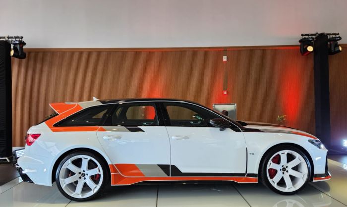 Os compradores do RS 6 Avant GT recebem brindes exclusivos, como uma mala personalizada, um quadro decorativo baseado no chassi do veículo e convite para o espaço da Audi no Grande Prêmio de Interlagos da Fórmula 1.