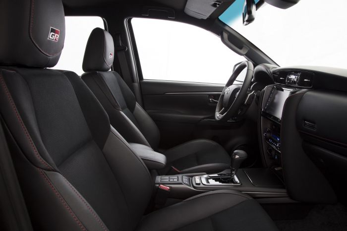 No interior, o modelo tem bancos em couro Ultrasuede e detalhes de costuras em vermelho, tendo o emblema Toyota Gazoo Racing bordado no apoio de cabeça. Por se tratar de versão especial, há uma placa de identificação GR-S, alocada próximo ao painel, com número da unidade. Os medidores analógicos têm tela TFT de 4.2", com uma animação exclusiva da marca GR-S. Entre os equipamentos de conveniência, destaque ao carregador sem fio para smartphones. Nas pedaleiras, o material é todo produzido em alumínio e, no volante, o revestimento vem com detalhes microperfurados, aliados à costura vermelha.