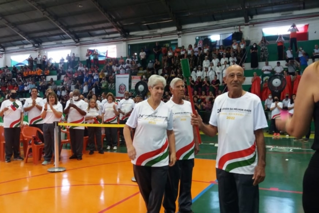 Jogos da Melhor Idade, que aconteceu no ginásio da Ferroviária e reuniu atletas de cerca de 180 cidades do Estado de São Paulo e autoridades locais e estaduais.