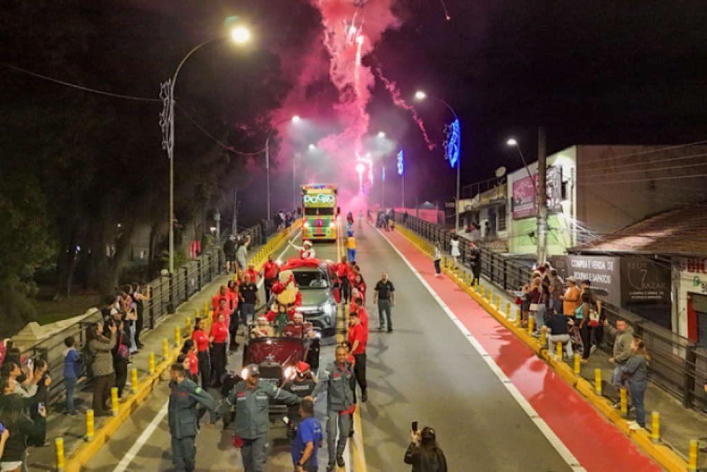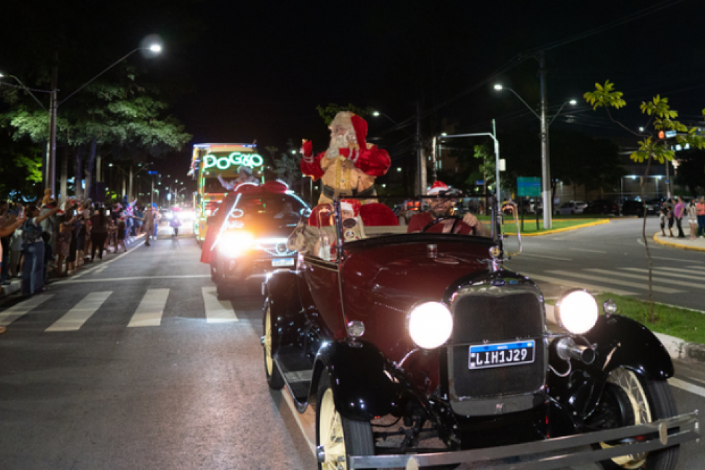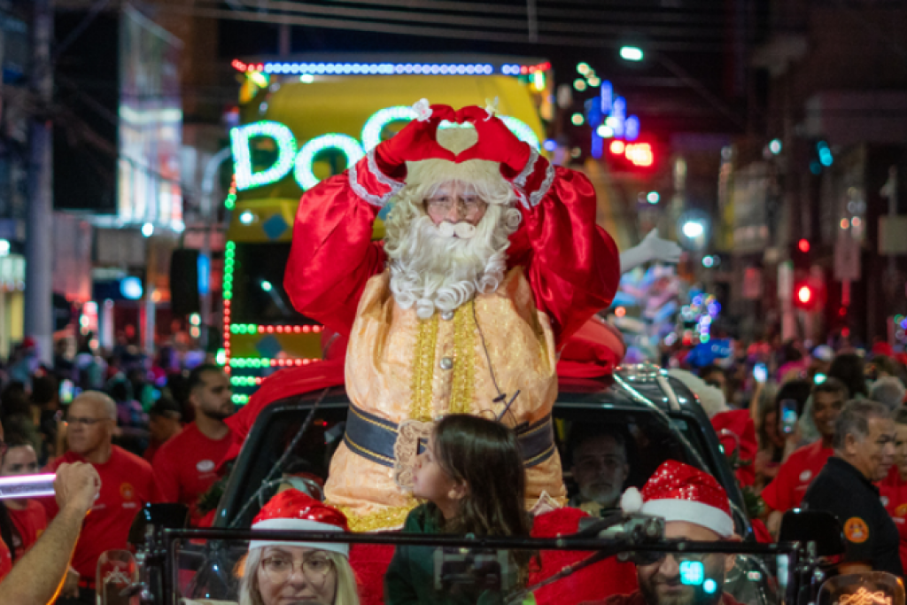 Uma iniciativa da ACIP - Associação Comercial e Industrial de Pindamonhangaba, o *PARADÃO de NATAL* e realizado em parceria com diversas instituições e com o apoio da Prefeitura Municipal, a carreata teve início às 19h, em frente à Dokar Veículos. De lá, seguiu pela avenida Nossa Senhora do Bom Sucesso em direção ao centro da cidade, onde o Bom Velhinho atraiu centenas de pessoas até a casinha especialmente montada na Praça Monsenhor Marcondes.