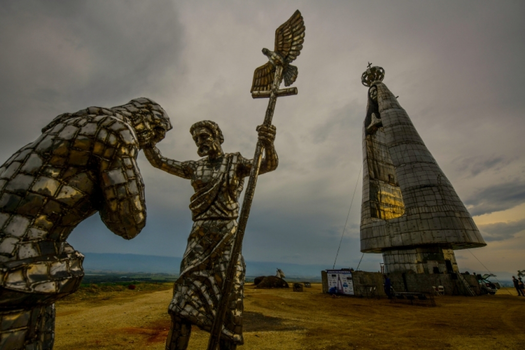 A estatua mede cerca de 50 metros, 20 a mais do que o Cristo Redentor