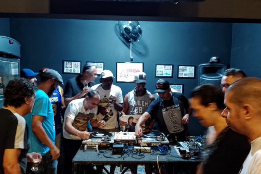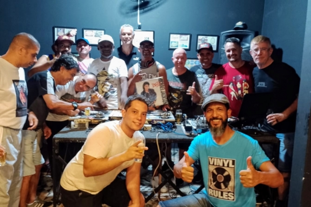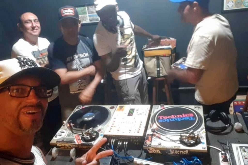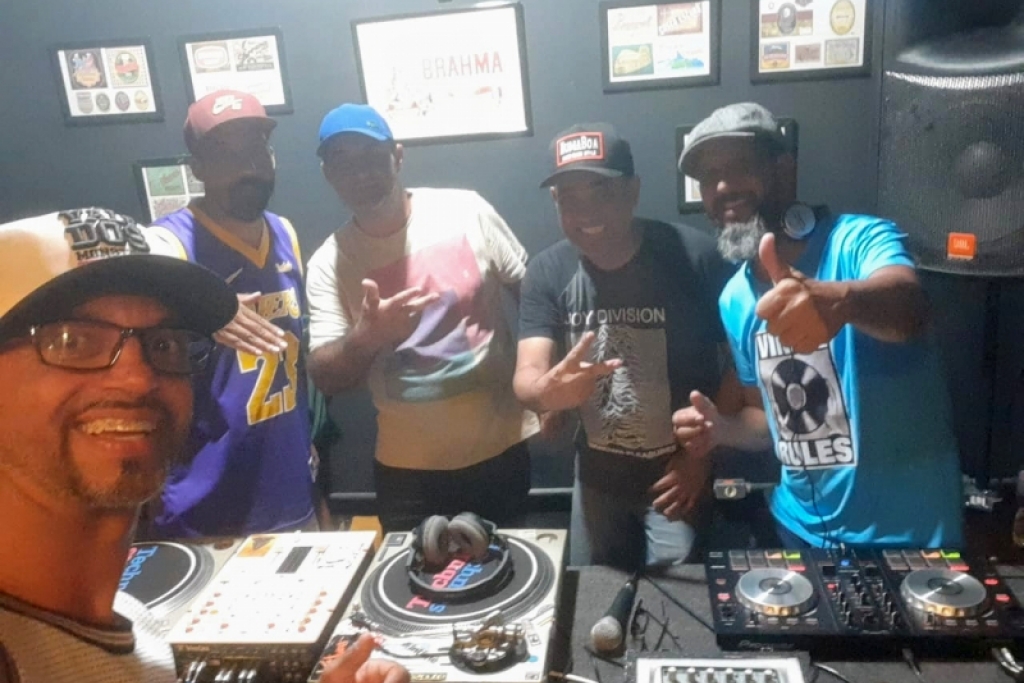 Dj's e amigos reunidos para comemorar o dia Internacional do DJ