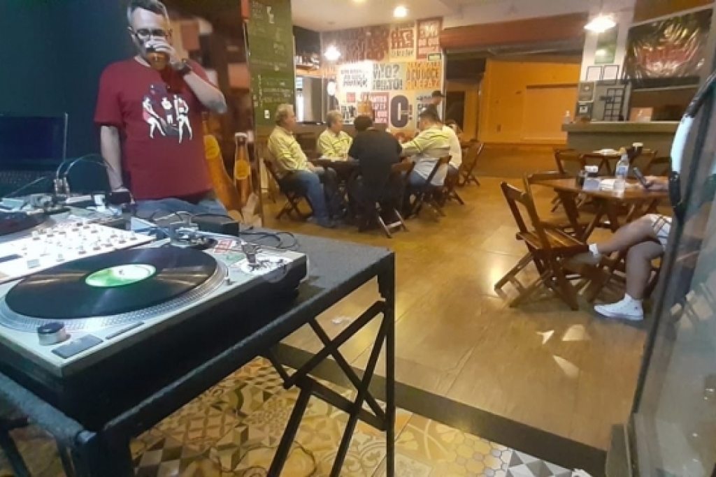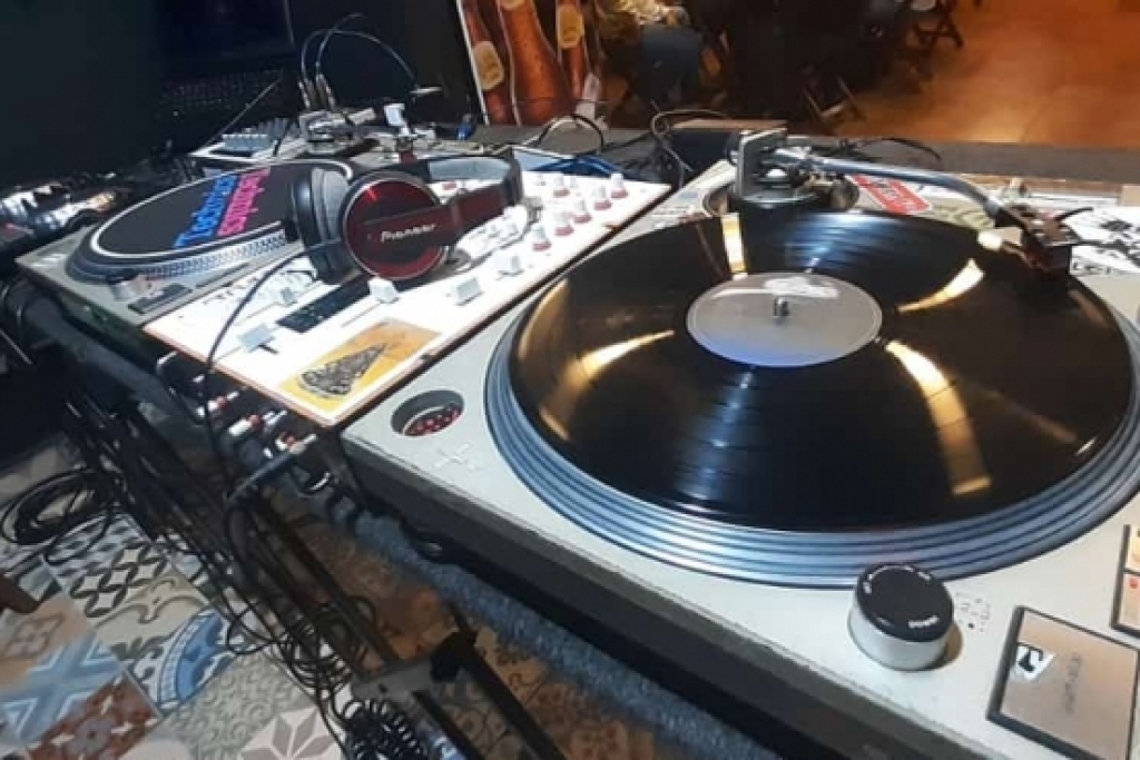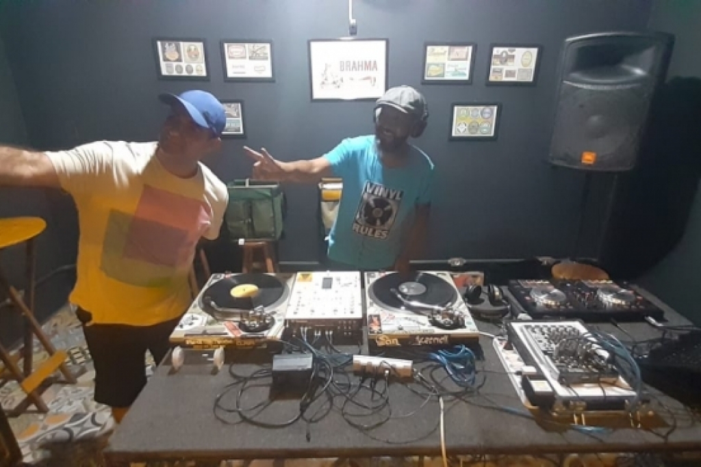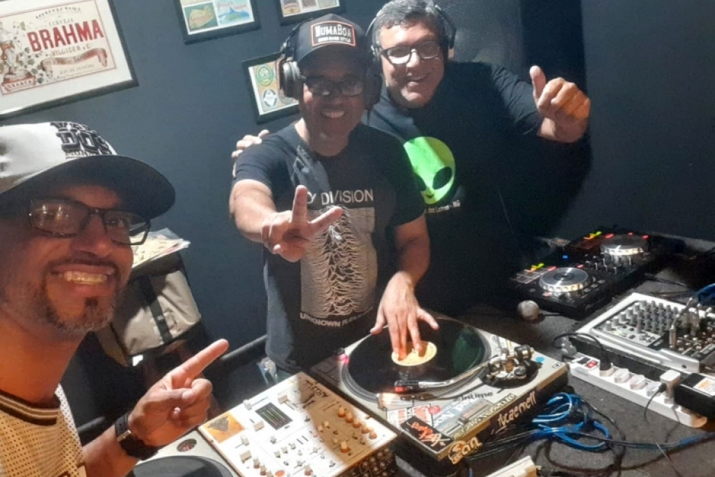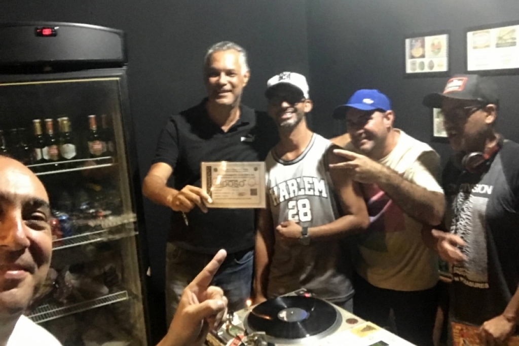 Dj's e amigos reunidos para comemorar o dia Internacional do DJ