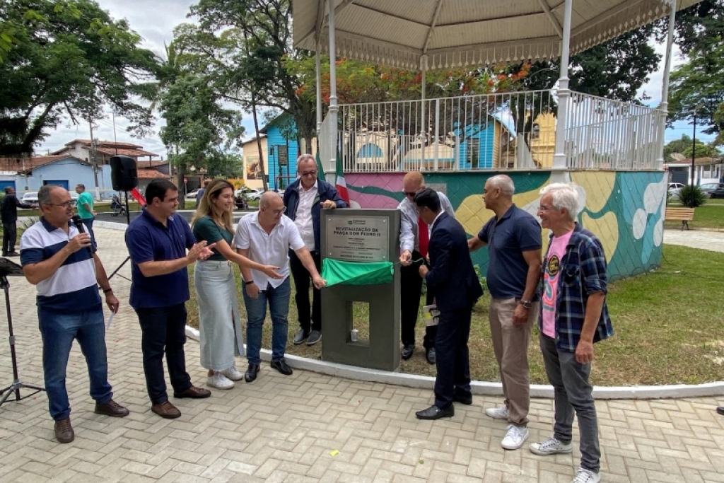 A prefeitura por meio da Secretaria de Obra s e Planejamento e da Secretaria de Cultura e Turismo realizou a cerimonia de inauguração da revitalização da praça Dom Pedro II (Praça do Santana)e inauguração dos bustos em homenagem aos saudosos Pastor João Kolenda Lemos e sua esposa Ruth Dóris Lemos ,a manha este domingo, 22 de outubro de 2023