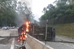 Na ação da quadrilha, dois carros-fortes foram atingidos pela explosão, sendo que um deles tombou na pista