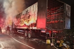 Fogo começou na cabine, atingiu toda a carga e interditou a rodovia no sentido Rio de Janeiro; ninguém ficou ferido.