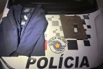 Criminoso quebrou vitrine com pedra, levou roupas e foi localizado pela Polícia Militar durante patrulhamento.