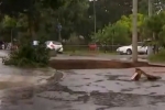 Chuvas provocaram o cedimento de ponte no bairro do Perinho; não há vítimas e prefeitura prepara ponte provisória.