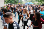 Várias pessoas estavam em uma confraternização em uma frente a uma casa quando teve início a confusão
