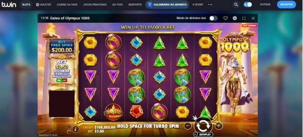 Primeiro, é útil e interessante se familiarizar com as principais características e recursos deste projeto da Pragmatic Play. O jogo Gates of Olympus é fácil de encontrar no Twin Jogos, onde você pode jogar no modo demo ou apostar com dinheiro real. O caça-níquel tem um tema mitológico, e os criadores se inspiraram nas lendas dos deuses do Olimpo. Uma jogabilidade emocionante e recursos de bônus interessantes esperam por você.