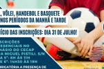 As vagas são divididas em turmas de futsal, handebol, vôlei e basquete
