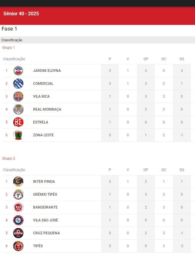 A categoria Sênior 40 teve uma rodada equilibrada, com jogos disputados e placares mais apertados.