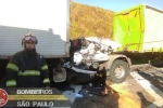 Colisão entre dois caminhões aconteceu na altura do município de Santa Branca