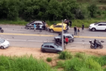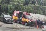 O acidente envolvendo caminhão, carreta e carro aconteceu pela altura do km 117, sentido RJ. Uma pessoas ficou ferida.