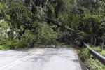 Agentes da Defesa Civil de Campos do Jordão e do DER estão no local para a retirada da árvore
