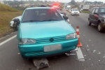 O engavetamento entre três veículos deixou duas vítimas levemente feridas