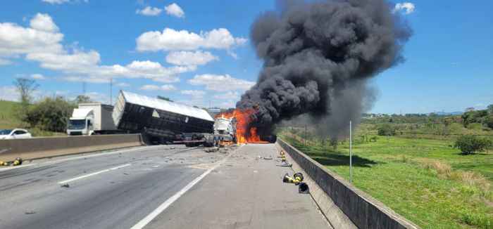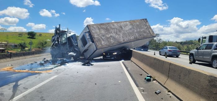 Um grave acidente interditou totalmente a Rodovia Presidente Dutra (BR-116) na altura do km 101,9, em Pindamonhangaba, no sentido São Paulo, nesta quarta-feira (22).