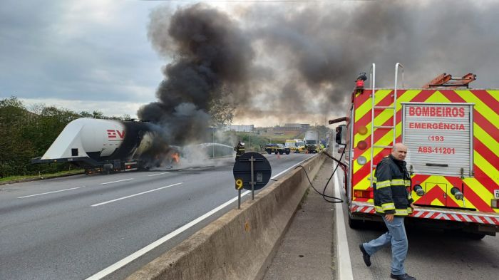 Um incêndio em uma carreta complicou o trânsito na manhã desta terça-feira (14) na rodovia Presidente Dutra, no trecho de Caçapava (SP). Segundo a Polícia Rodoviária Federal (PRF), o fogo começou por volta do quilômetro 126, no sentido São Paulo.