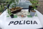 Uma equipe do Grupamento Tático Ambiental encontrou quatro pés de maconha e algumas sementes no quintal da residência