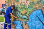 O mural foi inspirado nas descrições de publicações científicas para achados fósseis encontrados em sítios paleontológicos do município