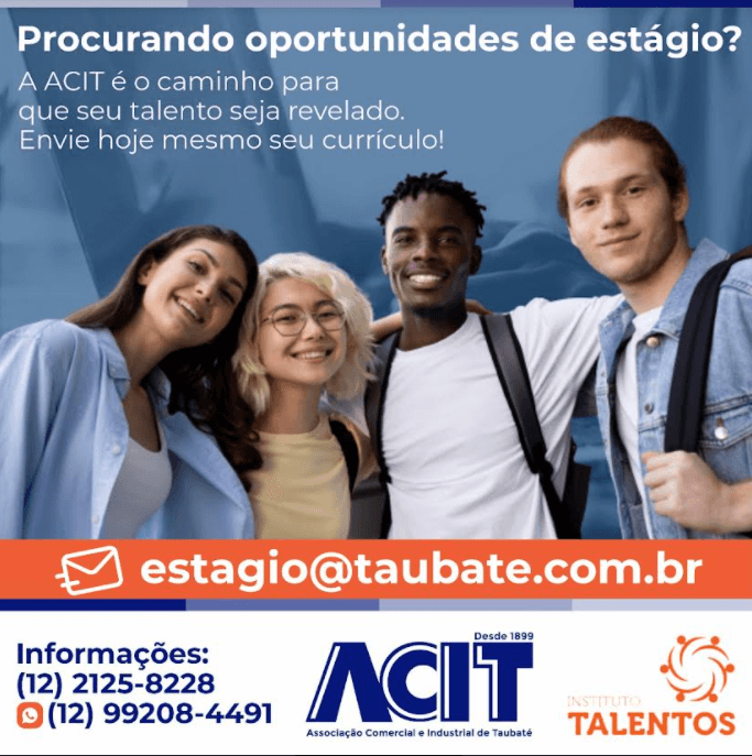 A ACIT (Associação Comercial e Industrial de Taubaté) oferece programa de estágio em parceria com o Instituto Talentos.