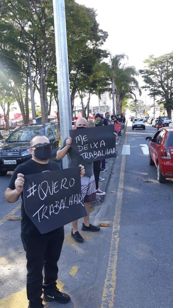 Músicos e donos de bares, restaurantes, pizzarias e academias se reuniram, nesta sexta-feira (9), na avenida Itália, em Taubaté, para um protesto em nome da categoria.