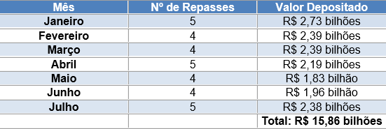 Nos primeiros sete meses deste ano, a Secretaria da Fazenda e Planejamento depositou R$ 15,86 bilhões aos municípios paulistas.