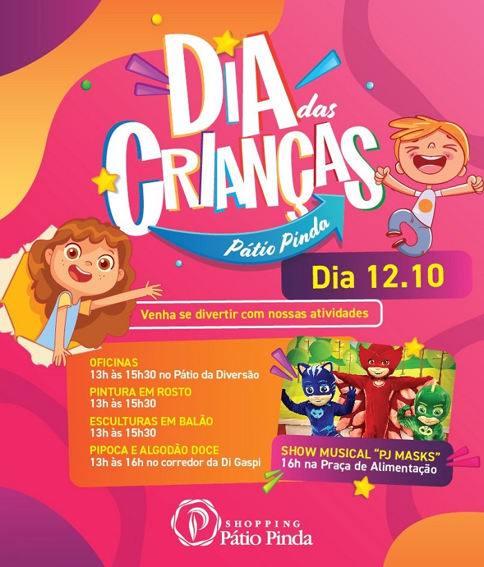 Em Pindamonhangaba, o centro de compras e lazer preparou uma programação especial para o público infantil. "Serão oficinas, show musical e ainda um parque de diversão para garantir um dia repleto de experiências e momentos em família", explica Bruna Silva, analista de Marketing do Shopping Pátio Pinda.