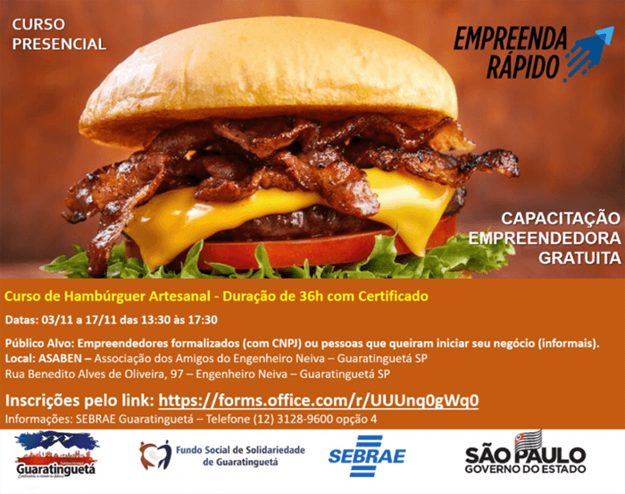 A Prefeitura de Guaratinguetá oferece em parceria com o Sebrae, curso que ensina a fazer hambúrgueres artesanais. As aulas são presenciais e gratuitas.