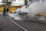 Bombeiros controlam as chamas e evitam que fogo atingisse casas próximas.
