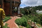 Bombeiros trabalharam em terreno de risco e oito moradores ficaram desabrigados após a interdição preventiva de duas casas vizinhas.
