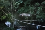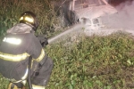 Carro estava completamente destruído quando equipe chegou ao local; ninguém ficou ferido.