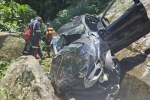 O carro despencou da ribanceira e caiu dentro da cachoeira. Todos foram encaminhados ao Pronto-Socorro de Ilhabela.