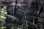 Corpo de Bombeiros atua no combate ao fogo, que destruiu uma área de aproximadamente 64m².