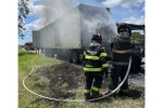 Corpo de Bombeiros, com apoio da Defesa Civil e concessionária, controla chamas em veículo carregado com papelão; motorista ileso.