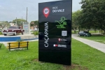 O totem contém o nome do município, a região turística da qual faz parte, as logos do Governo de São Paulo e um QR Code com informações sobre a região turística.