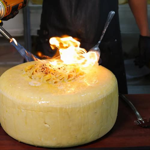 Segundo o chef, o prato é preparado com queijo derretido até atingir textura elástica, onde são adicionados macarrão, molho branco e finalização com mel da cidade mineira. Ele destacou ainda que esta é a primeira vez que participa do evento em São José dos Campos.
