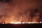 Fogo começou no início da noite desta segunda-feira (25) e atinge vegetação às margens da linha férrea.
