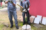 Moradores perceberam a presença da serpente e chamaram os bombeiros, que chegaram rapidamente ao local.