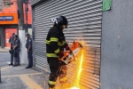 Para realizar o resgate, a equipe precisou utilizar ferramentas específicas para cortar a porta de acesso.