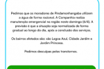 Bairros como Lagoa Azul, Cidade Jardim e Jardim Princesa são afetados. Companhia orienta uso consciente da água.