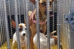 No local, os agentes encontraram três cães em condições precárias: magros, com costelas aparentes, infestados de carrapatos, desidratados e sem assistência veterinária.