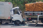 Um acidente envolvendo um carro, um caminhão e um utilitário causou uma lentidão de 4 km na Via Dutra, em Queluz, nesta quinta-feira (27)