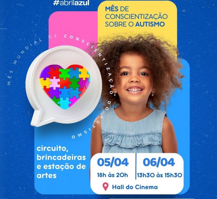 Em alusão ao Mês da Conscientização do Autismo, o Taubaté Shopping realiza neste sábado (5) e domingo (6) um fim de semana com atividades gratuitas voltadas ao acolhimento e à inclusão de crianças que têm diferentes formas de perceber e interagir com o mundo. As ações acontecem no hall do cinema, no piso superior do shopping.