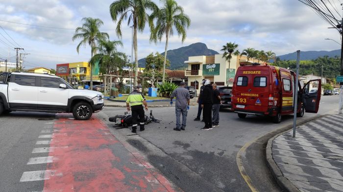 Um acidente de trânsito registrado na manhã desta segunda-feira (2) deixou uma pessoa ferida no Centro de Caraguatatuba. A colisão entre um carro e uma motocicleta ocorreu por volta das 8h10, na rua Priscilano de Castilho.